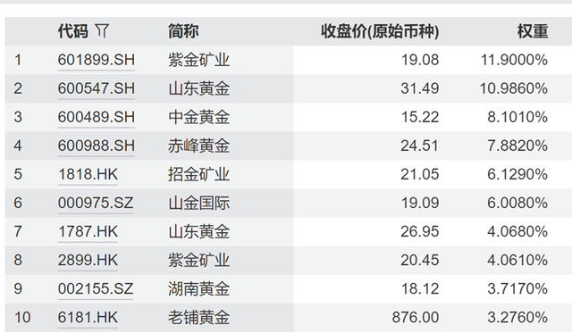 黄金股ETF(159562)通过跟踪中证沪深港黄金产业股票指数,一键打包沪港深三地的黄金开采、冶炼和销售等优质企业,给小伙伴提供了便捷的投资渠道,指数成份股共42只、成分股不乏山东黄金、紫金矿业、中金黄金、赤峰黄金、山金国际、招金矿业、湖南黄金等涵盖国内的金矿龙头 ,也有老铺黄金、华钰矿业、特力A等及黄金产业相关的热门个股,前十成分股权重高达68.91。13%(截至2025.06.30)。